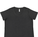 LAT Ladies 4.5 Ounce Curvy Fine Jersey Crewneck T-Shirt. 4.5 ounce 60/40% combed ringspun cotton/polyester fine jersey fabric. Ribbed collar. Self-fabric back neck tape. Double needle sleeves and bottom hem. Side seam construction. EasyTear label.